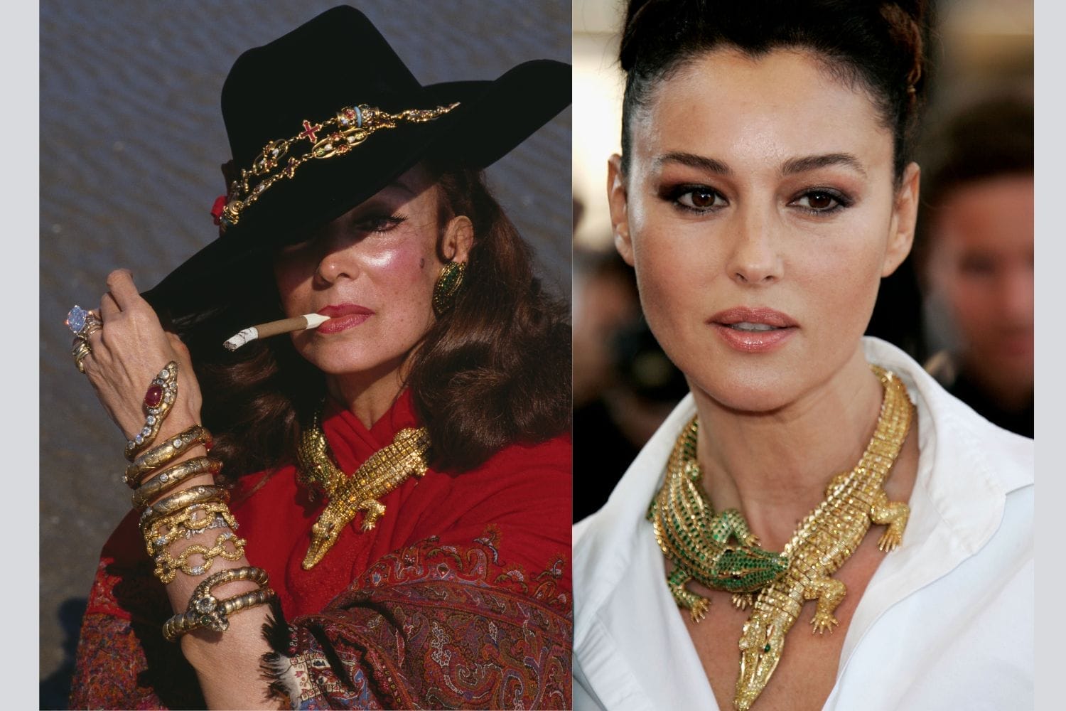 (左起)女演员 María Félix 和 Monica Bellucci 佩戴鳄鱼项链,充满神秘、狂野、诱惑的气质。