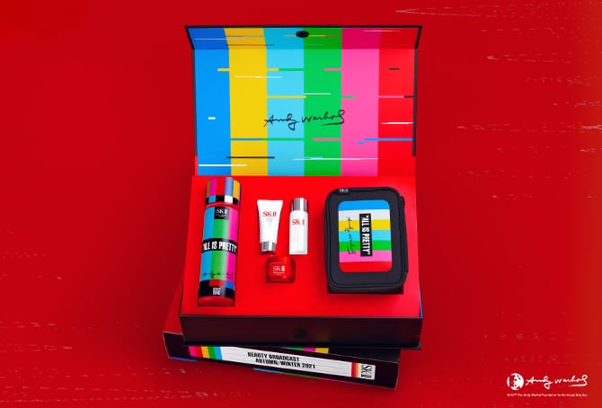 SK-II 跨界联名安迪沃荷基金会(The Andy Warhol Foundation)推出限定版护肤精华露,传递“美丽无止境”的美学理念。