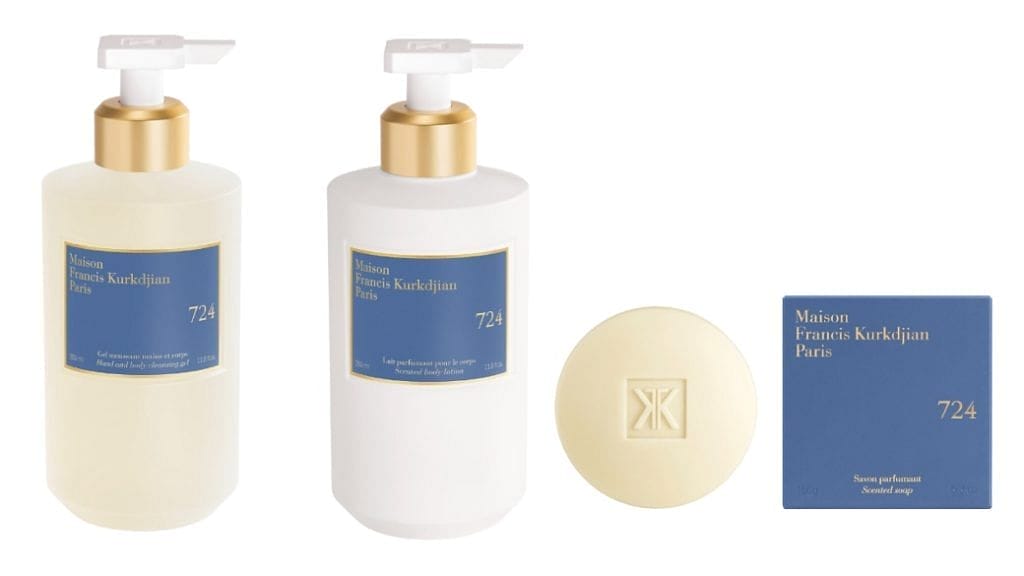 Maison Francis Kurkdjian 724 香氛系列以都市律动为灵感,将卡拉布里亚佛手柑、白花调和感性麝香融为一体,展现出充满活力的气息。此系列包括手部与身体洁肤凝胶 724 Hand and Body Cleansing Gel、身体乳液 724 Scented Body Lotion 和香皂 724 Scented Soap,温和清洁肌肤的同时留下迷人的香气。