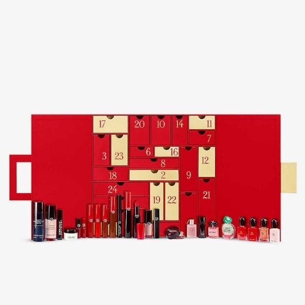 结合红色与金色的Armani Beauty圣诞倒数月历礼盒内有24个格子,产品包括不同色号的唇膏及唇彩、眼影、睫毛膏、香水、眼霜及卸妆液等,彩妆迷可一次过收藏品牌经典热门单品,能不心动吗?