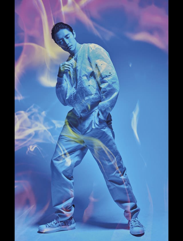 充满现代感的外套、裤子及“报纸”印花Dior and Daniel Ar Sham B23运动鞋/Dior Men。