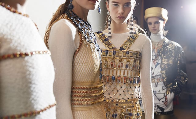 线条简单利落的设计完美衬托古埃及鲜明独特的几何美学,搭配属于埃及贵族金光闪耀的饰品,带来了绚丽妩媚的埃及风情。