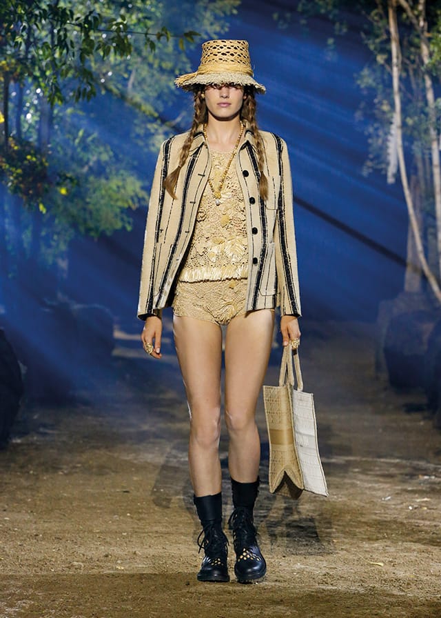 自从Maria Grazia Chiuri担任Dior品牌创意总监后,一系列充满浪漫气息的设计深受时尚女士们的喜爱。品牌崭新2020年春夏系列,将秀场打造成Dior专属花园,意向Christian Dior先生的妹妹Catherine Dior女士致敬,同时也唤起人们对地球暖化的意识。当中,模特头上的草编渔夫帽成功吸引了众人目光,与优雅华丽的霓裳搭配,毫无违和感。草编渔夫帽上以刺绣方式,绣上品牌名称以做点缀,散发一股浓郁清新感。