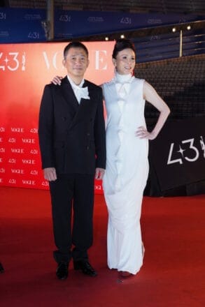 圈中著名的金童玉女 —— 梁朝伟与他的得力经纪人兼妻子刘嘉玲一同踏上红毯,以低调而默契的造型展现夫妻间的深厚默契。刘嘉玲身穿法国高级定制时装品牌 Stéphane Rolland 2025 春夏高级订制服系列,以一袭雕塑感白色长礼服亮相。礼服以立体垂坠的剪裁线条,搭配从领口延伸至下摆的立体钻石型装饰,勾勒出力量与柔美并存的姿态。她以高盘发和钻石吊坠耳环为整体造型增添层次感与典雅气质。而梁朝伟则身着黑色双排扣西装,以浪漫复古的褶皱领结,在稳重之中点缀一丝雅致,与红毯搭档刘嘉玲的造型巧妙呼应。