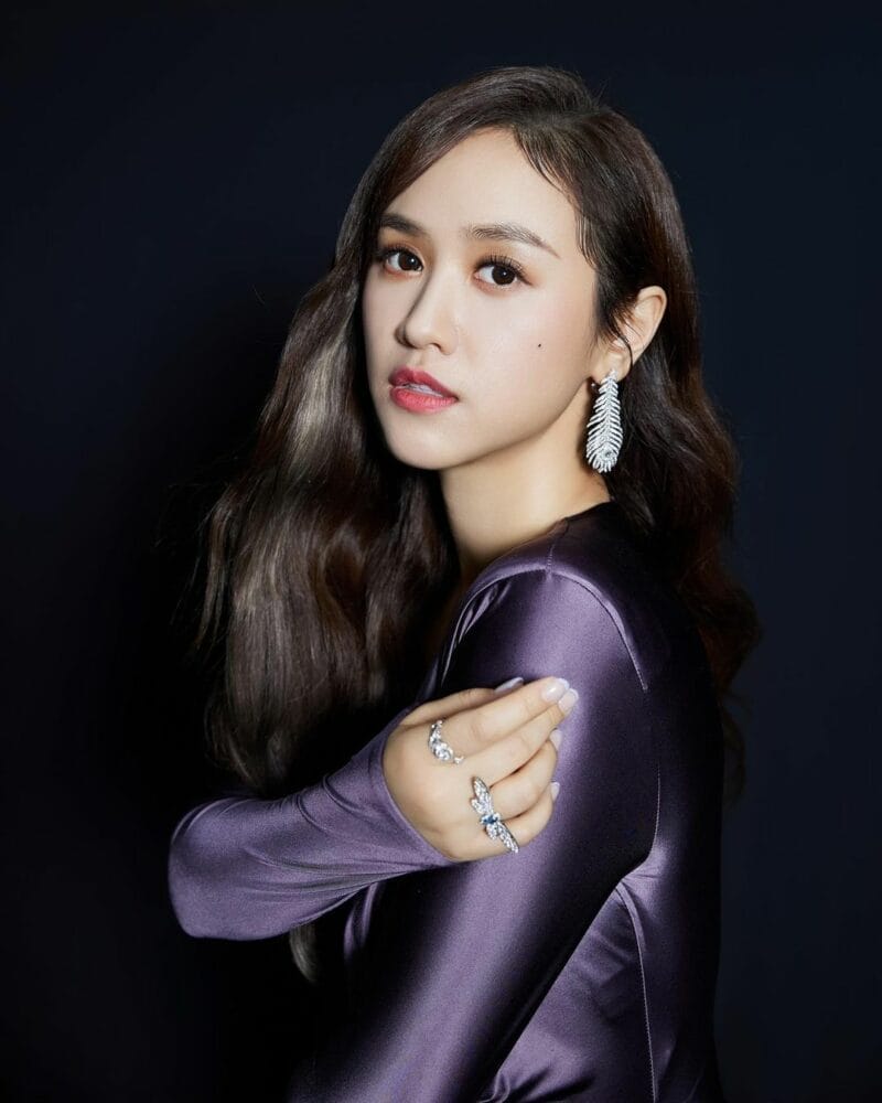 以 “吴宗宪大女儿” 的身份而广为人知的 Sandy 吴姗儒也跟随爸爸的脚步踏入演艺圈,并成为节目主持人。这是她第五次入围金钟奖,今年入围的节目也是她第一次入围并获奖的节目—— 《小明星大跟班》。在本届颁奖仪式的红毯上,她身穿意大利品牌 Elisabetta Franchi 紫色深V连衣裙,搭配 Boucheron 的珠宝以及 Christian Loubotin 的银色水钻高跟鞋。