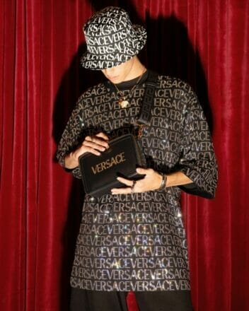 简约但高调的T恤非它莫属了!这件耀眼的T恤来自范思哲(Versace)节日系列单品,简约的黑色T恤,但饰满闪闪发亮的“Versace”字眼,十分亮眼。其T恤以宽松版型呈现,适合赴派对穿上它,舒适且容易吸引众人目光。
