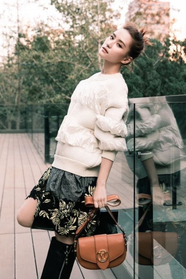 Laurinda何超莲身穿白色针织上衣搭配饰有印花的裙子,手上拿着的手袋是路易威登(Louis Vuitton)Pont 9 Soft单肩包,圆润的包身采用粒面小牛皮制成,搭配丝滑牛皮内衬,双面肩带经过缝制后再由手工合拼,并印上Monogram花卉,是品牌主打包款之一。
