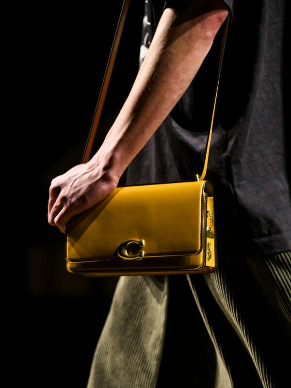 Stuart Vevers向品牌首位设计师Bonnie Cashin致敬,重现1964年推出的单肩包,并以精简的设计诠释。全新的Bandit单肩包采用皮革与帆布材质打造,中央饰有金色金属包扣,简约且摩登。