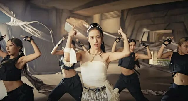 Jisoo不仅是Dior全球代言人,亦是高级珠宝品牌Cartier的品牌大使, MV中自然佩戴多款Cartier珠宝。在这一幕中,Jisoo穿上Marina Eeerrie的白色紧身胸衣洋装亮相,配以 Clash de Cartier 系列的戒指与耳环衬托高贵优雅的造型。