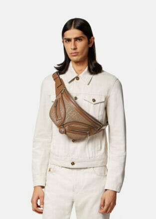 范思哲(Versace)这款 Allover Repeat 休闲腰包采用提花帆布制成,腰包饰有 Versace Allover 图案和皮革装饰,配有装饰性 Medusa 串饰拉头和侧拉链口袋,重新演绎品牌典藏的休闲廓形,可肩背或腰挎使用,酷爸爸肯定会喜欢。