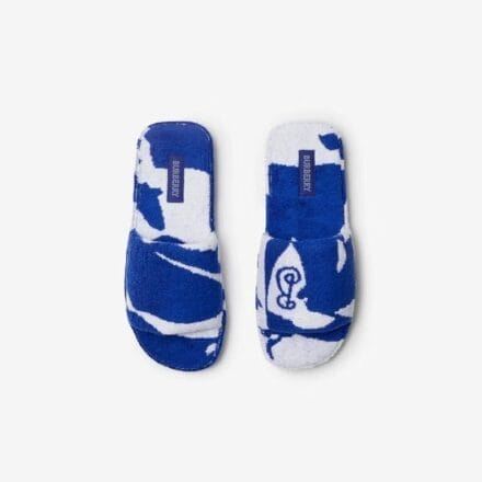 博柏利(Burberry)的 Snug 棉质拖鞋,选用柔软棉质毛巾布面料打造,于意大利工坊精制而成,点缀对比感马术骑士徽标(EKD)印花,诠释独具一格的夏日魅力。