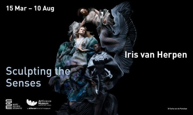 位于滨海湾金沙(Marina Bay Sands)的艺术科学博物馆(ArtScience Museum)携手法国巴黎装饰艺术博物馆,联合呈现《Iris van Herpen: Sculpting the Senses》时装展,向她致敬。展览即日起至 8 月 10 日举办。这次回顾展汇集 Iris van Harpen 多年来的 140 余件极具代表性的作品。