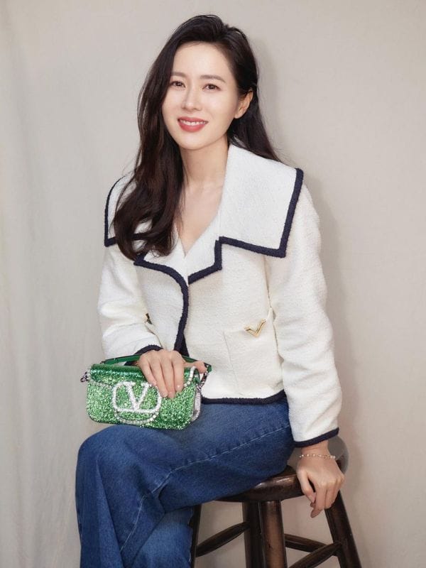 准妈妈孙艺珍早前隔空支持华伦天奴(Valentino)2022秋冬高级定制时装秀,特别在IG释放出新造型,手拿Valentino Garavani Mini Locò手袋。包款镶满亮片,Vlogo Signature标识及包款饰边均镶有Swarovski水晶,精致且耀眼十足。