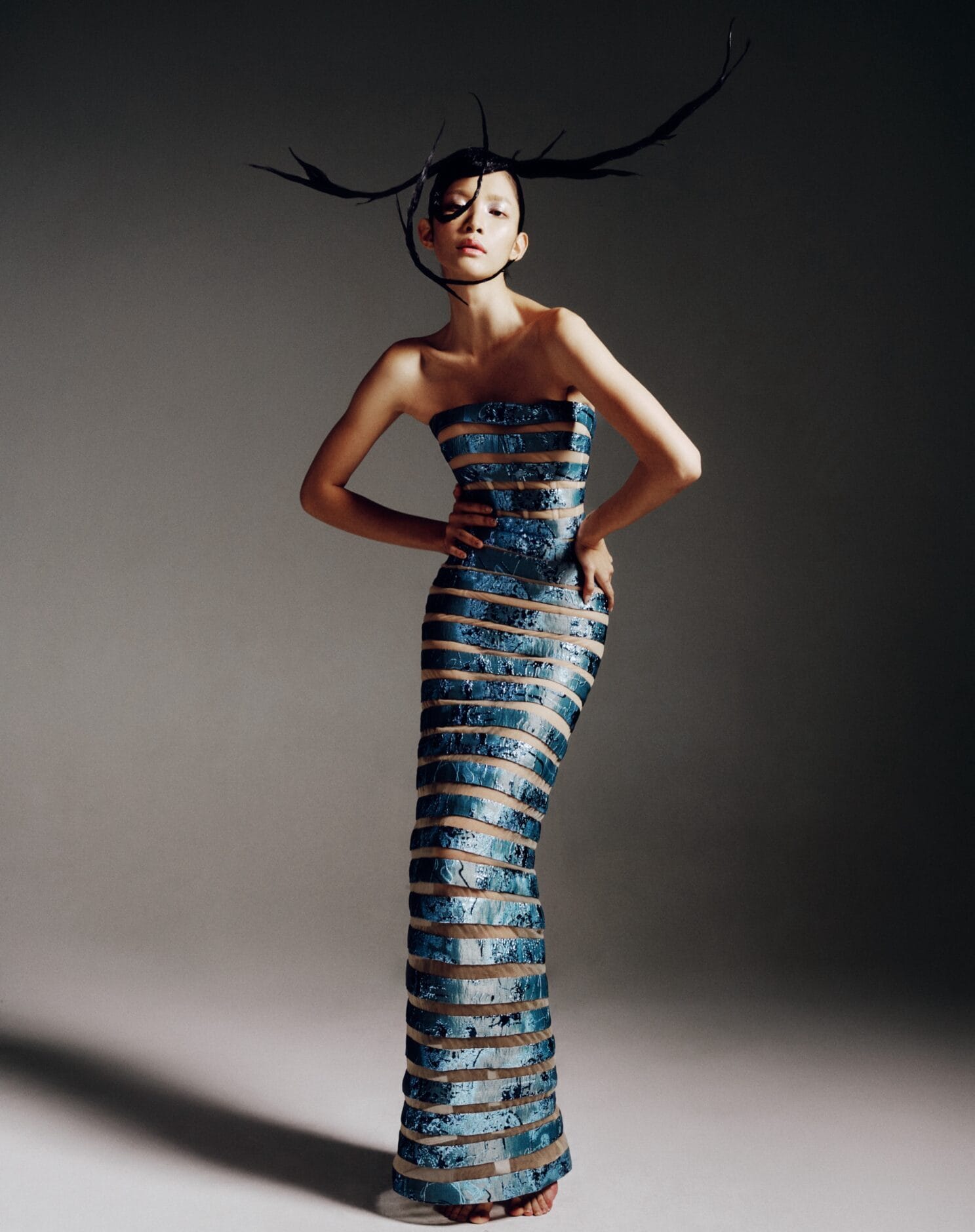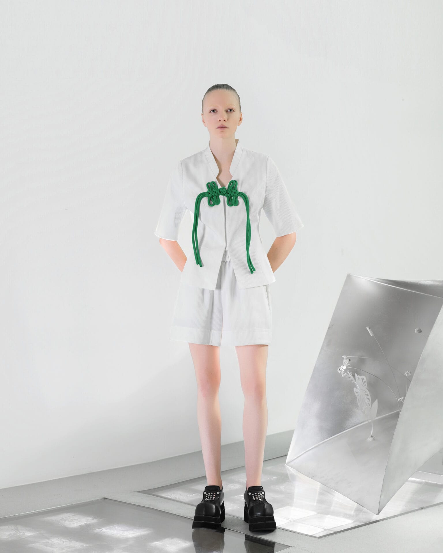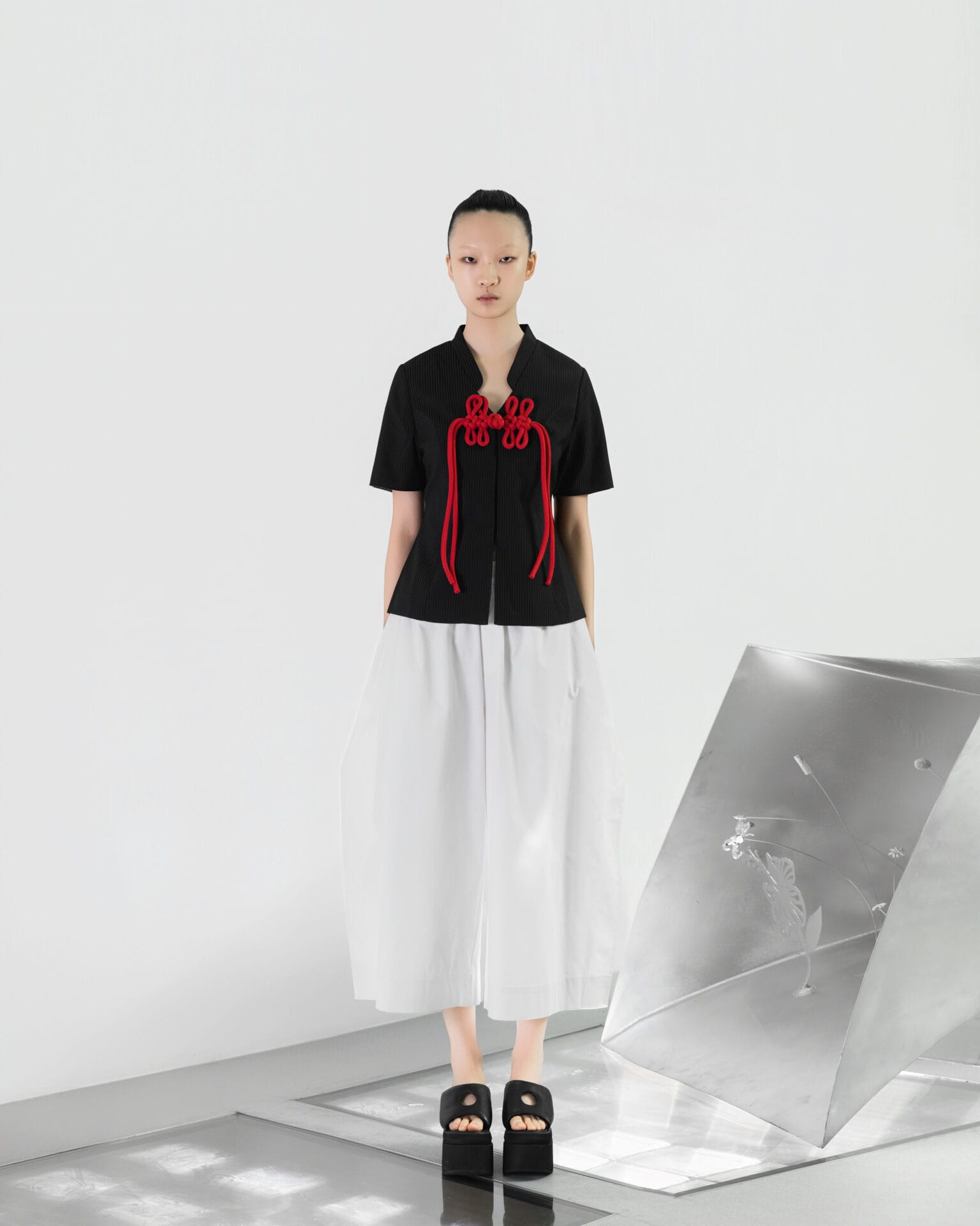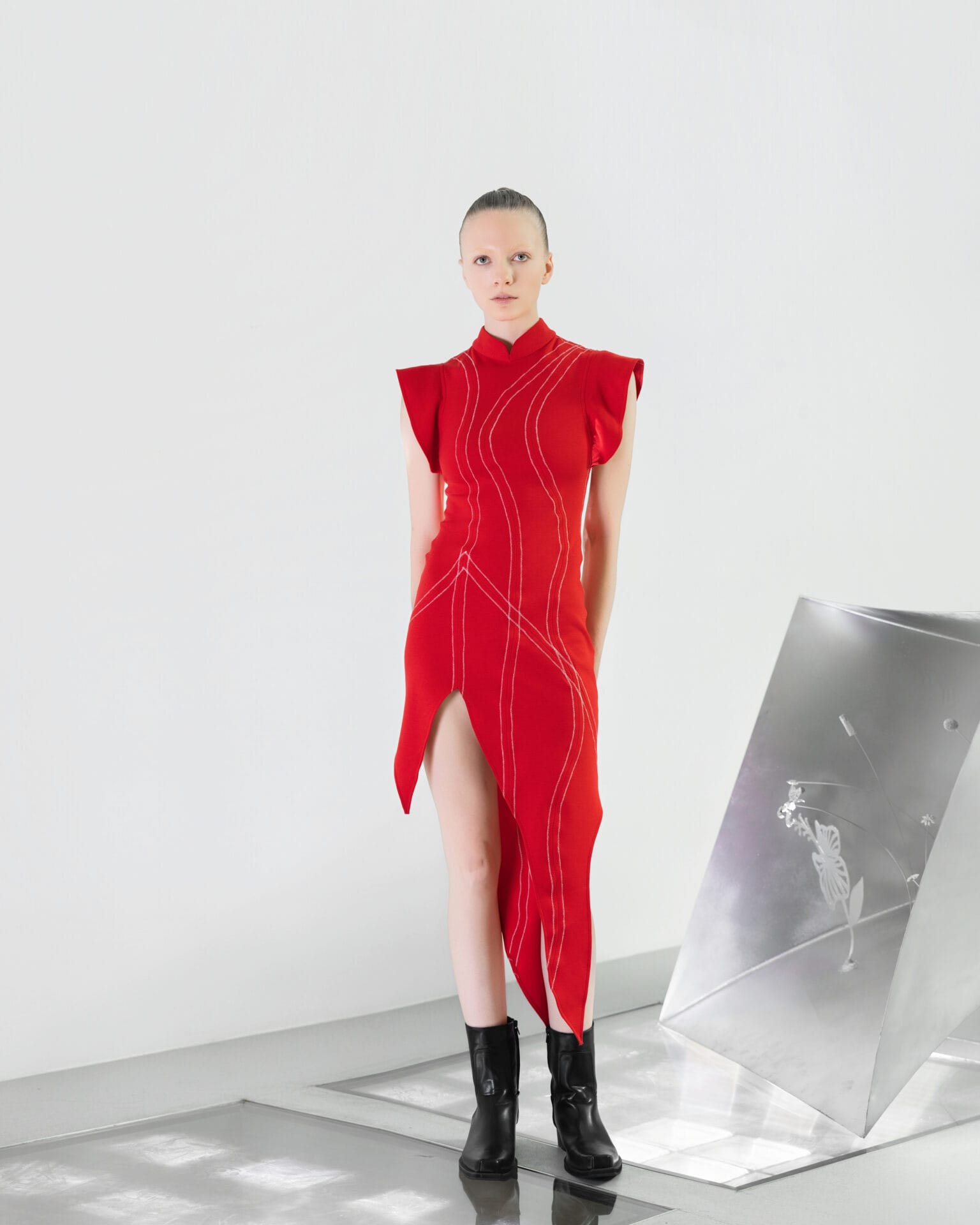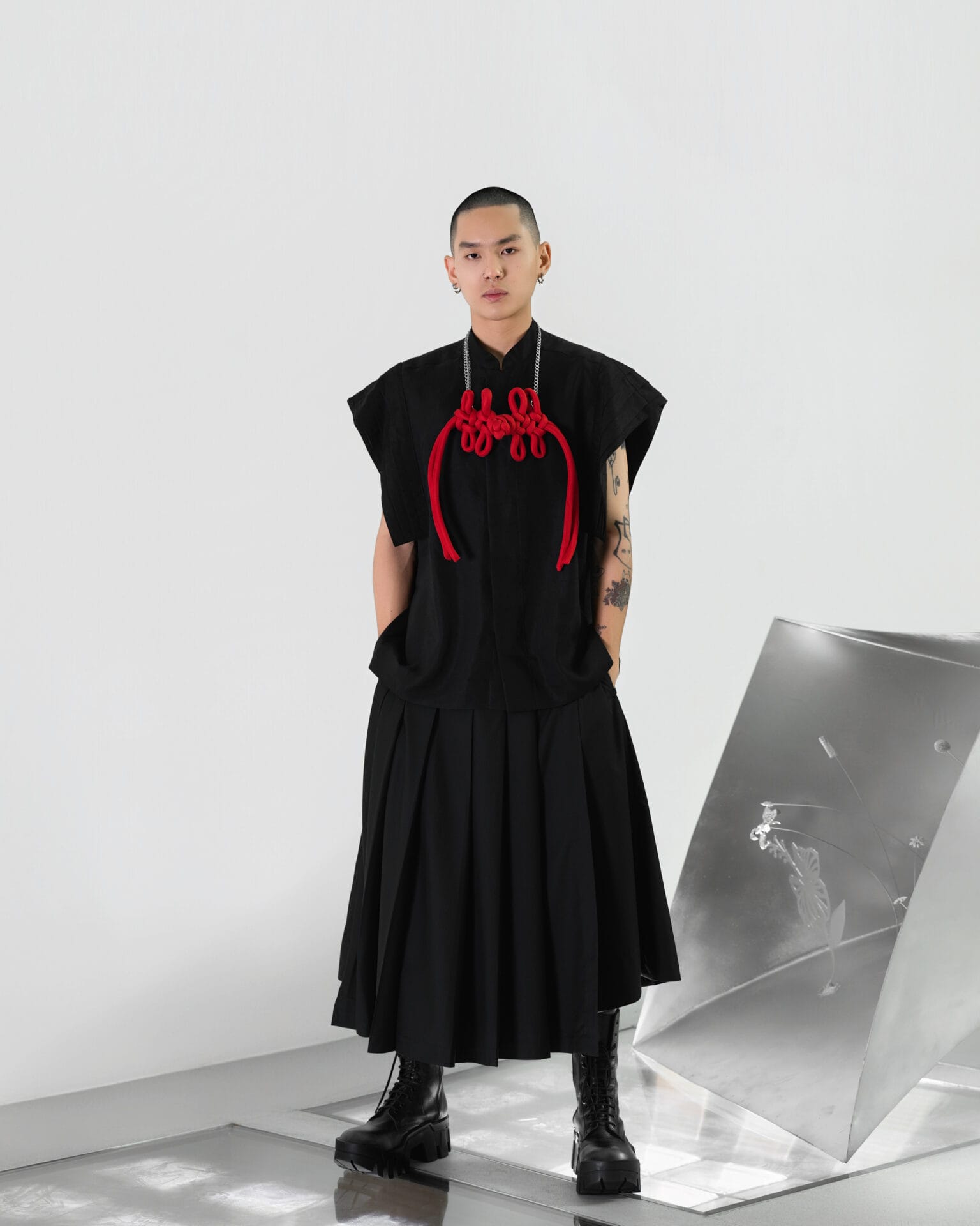 Dikson Mah 的 CORE 以中国文化中的花鸟意象为灵感,将其视作生命绽放与灵魂追寻自由的象征,并重新以雕塑般的造型风格,从身体的核心向外延展。整体造型既具东方浪漫,又散发未来气息,以解构性的廓形、光泽面料与金属配件重塑新春服饰的美学框架,呈现出传统符号的当代诠释。