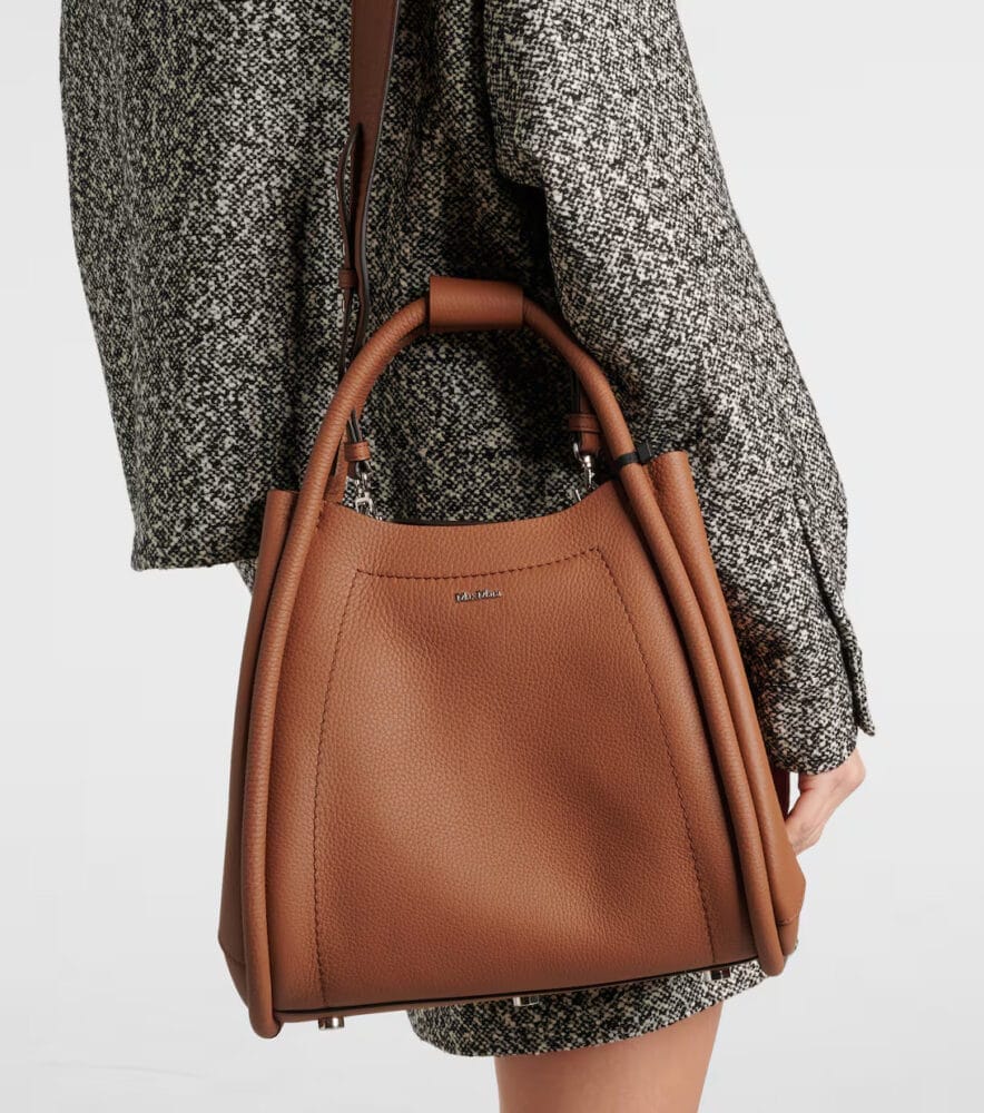 Max Mara 的 Marin Small 手提包以精致皮革制成,外观简洁大气,兼具实用性与优雅。包内设有环扣设计,方便挂上小型皮具,帮助整理必需品,确保物品触手可及。无论日常出行或短途旅行,它都能提供足够空间,完美平衡功能与时尚感。