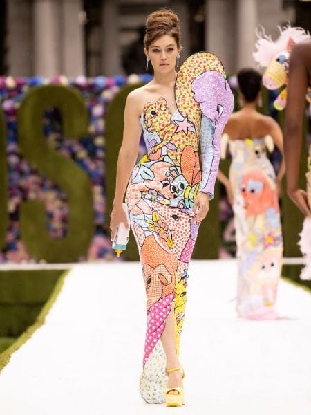 以往在米兰办秀的Moschino回归纽约时装周,于纽约市曼哈顿区布莱恩公园(Bryant Park)发布最新系列。当天下起雨来,时尚秀推迟了将近一个小时才开始,最终嘉宾们还得边撑伞边观看这场俏皮感十足的大秀。虽然天公不作美,一点也不影响大家看秀的心情。