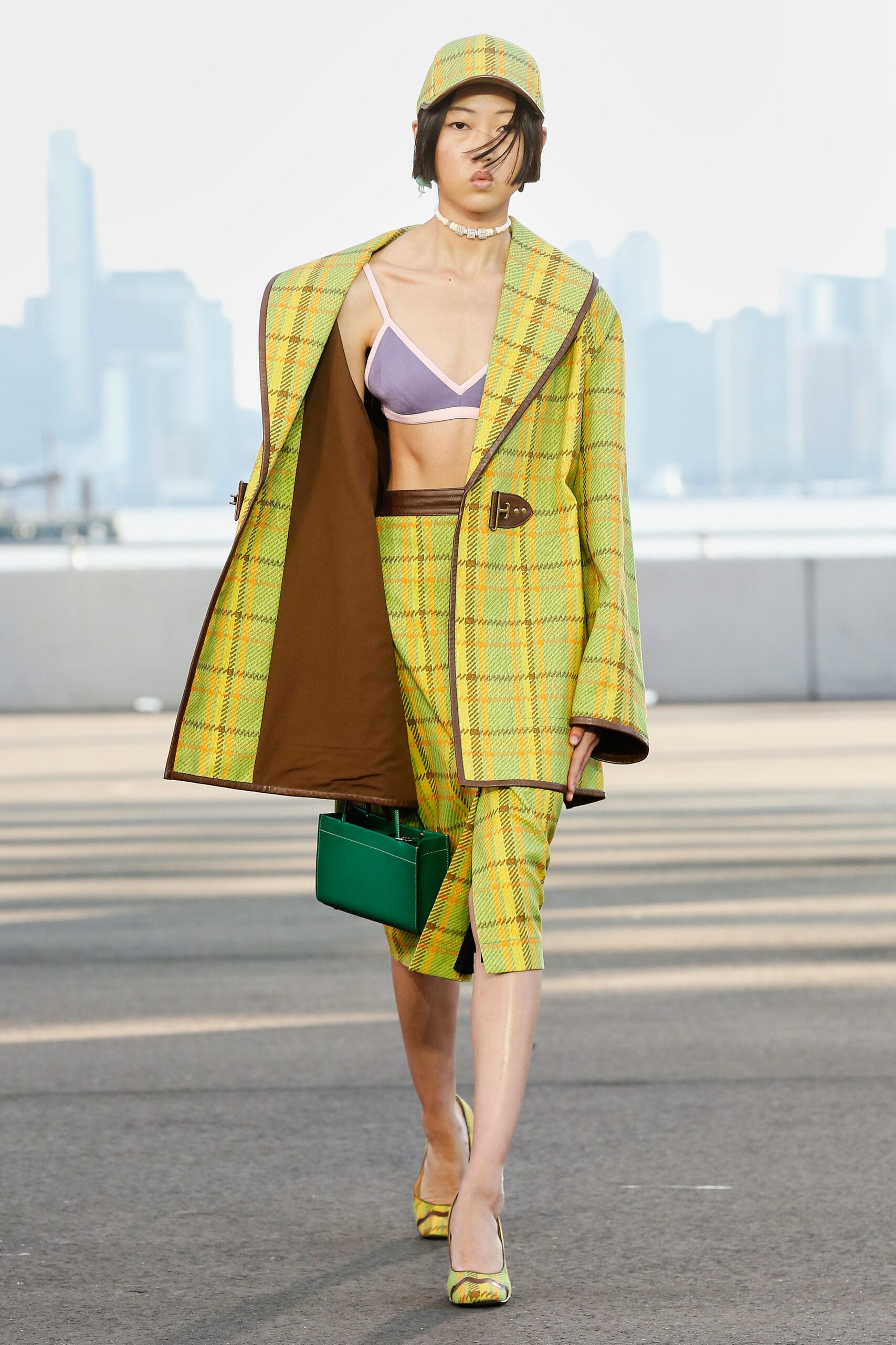 Coach结合线下时装秀与线上直播形式。2022春夏系列灵感来自于品牌在1980年代所推出的标志性设计,创意总监Stuart Vevers向品牌首任创意总监Bonnie Cashin的积极乐观精神致敬,将精湛的传承工艺融合新颖的撞色设计,传达品牌本真的时尚态度同时演绎全新都会风尚。有趣的是部分的服装及手袋印有Coach、Super Grump短语、中央公园、Zabar’s三明治、布鲁克林大桥等纽约著名地标,处处有“纽约”的足迹,太有趣了!