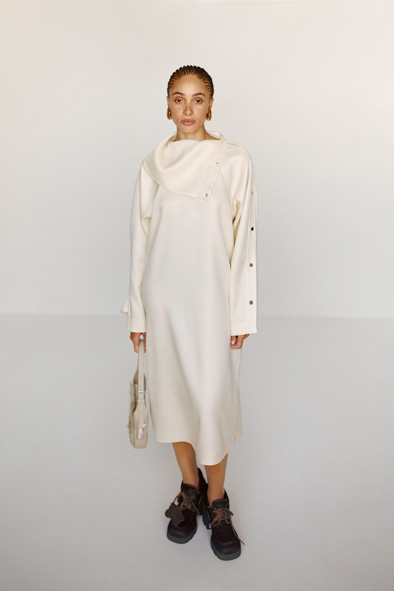 Hermes 的白色裙装以短款背心搭配直筒半身长裙,搭配同色系纽扣,是春夏出游的理想之选;Burberry 的缎面洋装同样以纽扣细节装饰,不规则的翻领设计呈现出独特魅力;Valentino 透过刺绣工艺打造晚装,展现了女性与人性之美;Saint Laurent 大方又不失女人味的露背短款洋装;Sportmax 与 Acne Studios 的白色高领连衣裙则呈现出极具前卫感的设计理念。