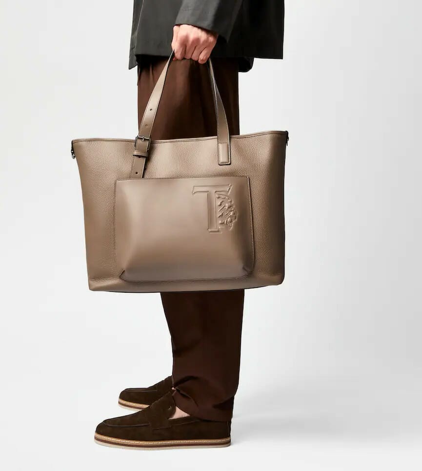 1T 运动鞋的鞋底缀以细小的橡胶豆豆鞋钉、全新 Double Stripe 鞋款为讲究手工制作的系带鞋带来全新演绎,其多层鞋底设计采用橡胶与皮革饰边的双色组成、Tote Bag 和背包均采用皮革或富有民族风面料制成、经典的 Di 手袋也首次带来超大型的版本,还可定制加上专属名字;而皮带则加強了品牌独特的元素,例如 T Timeless 皮带扣及由皮革编织而成。