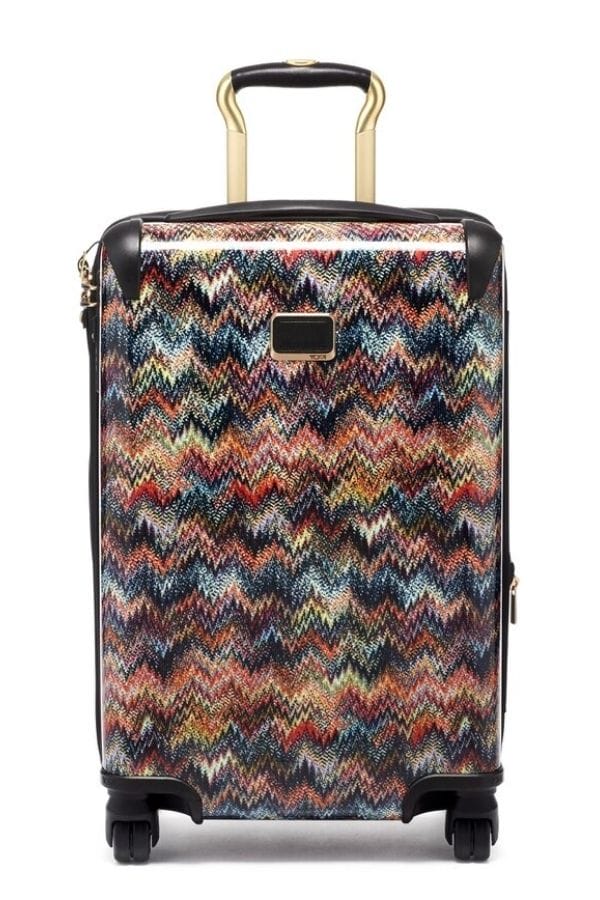 旅游精品品牌Tumi携手意大利针织时尚品牌Missoni推出6款联名商品,皆选用轻巧并且耐用的材质打造,其中包括轻便耐用的四轮硬壳登机箱和Just In Case折叠托特包。单品选用象征Missoni充满活力的经典锯齿图腾,创造充满色彩而时髦的设计。