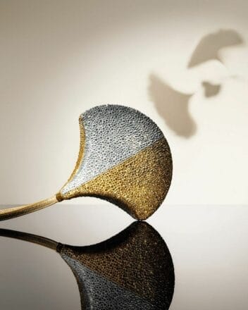 宝格丽 (Bvlgari) 品牌皮具与配饰创意总监 Mary Katrantzou 上任后的首个系列 “Calla”,以罗马卡拉卡拉大浴场的马赛克地砖花纹为设计灵感,其图案让人联想到象征力量与韧性的银杏叶。新款 Ginkgo 手拿包巧妙融合珠宝艺术与皮具工艺,采用金属塑造银杏叶构型并搭配纳帕软面皮和柔软的皮革手环,推出纯色皮革款以及密镶水晶款,致意品牌深厚的罗马渊源。