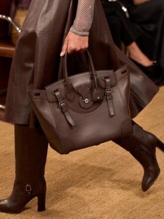 Hermes 女装艺术总监 Nadege Vanhee-Cybulski 从马术和摩托车运动中汲取灵感,以“骑士”为题打造2024秋冬女装系列。新季手袋中最引人注意的是 Shoulder Birkin 手袋的惊喜回归。这款包包最早由时任创意总监 Jean Paul Gaultier 于2004春夏系列首秀中发布,重塑了标志性 Birkin 手袋的包身比例并延长手柄以实现肩背造型。