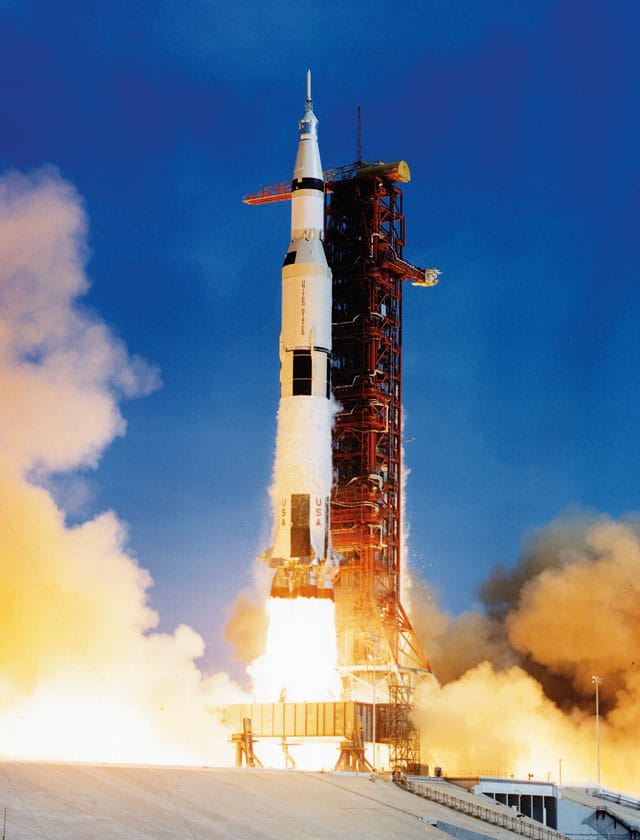带人类冲出地球的,是美国国家航空航天局的Apollo 11“鹰号”登月舱。它在茫茫太空中漫游了8天13小时18分35秒,绕行了月球30周后才安全登陆月表。此史无前例的登月发射现场共吸引了超过一百万的人群围观,全世界观看现场直播的观众人数也达到了创纪录的六亿人,是人类历史上最激动人心的太空探索事件之一。