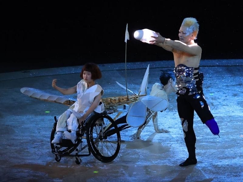 2020年东京残奥会开幕式以“我们拥有翅膀”(We Have Wings)作为理念,皆在鼓励人们像残奥运动选手们,不管面临逆风或顺风都能发掘自身潜能,并勇敢追逐梦想。在开幕典礼上,由75名身障演员精彩演出,运用机场飞机起飞的概念,带领残奥会展开翅膀,勇敢飞翔。