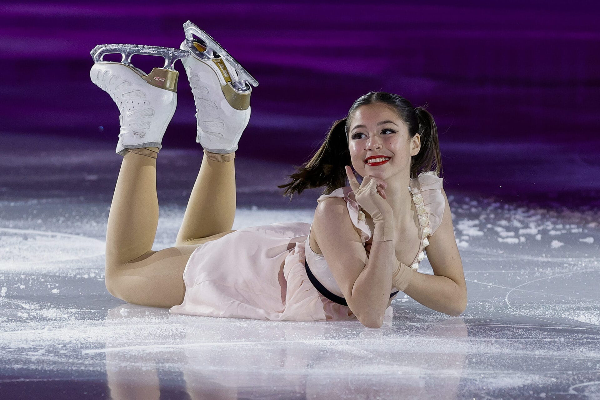 2021年,在奥尔良竞技场举行的美国花样滑冰锦标赛结束后,刘美贤(Alysa Liu)在群星表演晚会(Skating Spectacular)中进行演出。(图片摄影:Tim Nwachukwu/Getty Images )