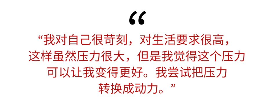 工作。我是一个不能停下来的人,停下一个星期就浑身不自在。以前的我不能停下,那是因为一旦停下就没有收入,现在不能停下是不能让我的表演停在某个阶段。我担心自己休息太久,会变得懒散,没有新鲜感,因此必须一直创新,保温!我觉得当演员,保温很重要。