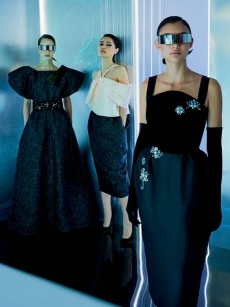 2021秋冬时尚 Khoon Hooi 2021秋冬时尚系列以外太空作为灵感,结合女性化的轮廓与宛如高级定制服的华美细节—巨大蝴蝶结、钉珠、亮片及羽毛,呈现出一场具有逃避主义,幻想中的“外太空礼服”,未来感十足,不失女性的温柔力量。