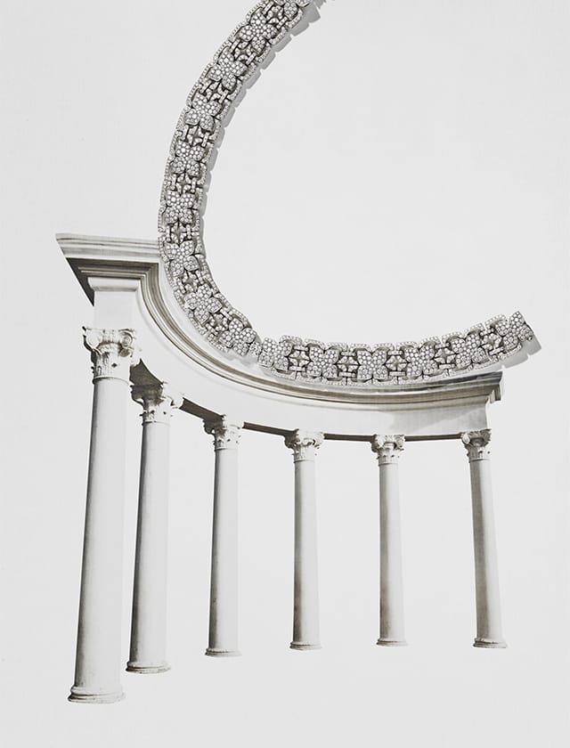白金高级珠宝项链,镶嵌3颗圆形明亮式切工钻石与密钉镶钻/Bvlgari。