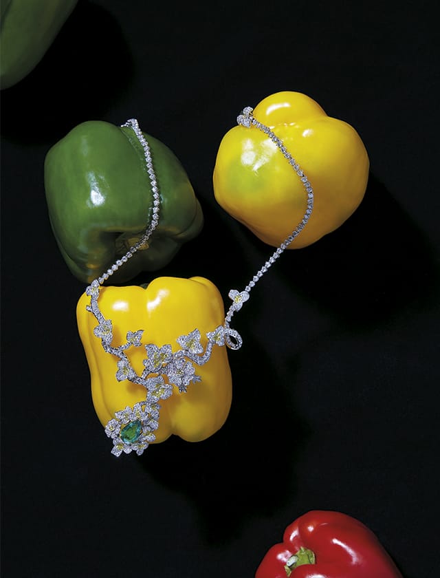 珍罕宝石经珠宝工艺的巧手雕琢,化身美艳诱人的艺术品,如同五颜六色的蔬果,让人垂涎不已。