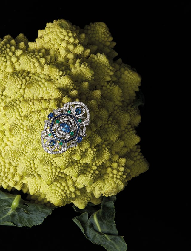 珍罕宝石经珠宝工艺的巧手雕琢,化身美艳诱人的艺术品,如同五颜六色的蔬果,让人垂涎不已。