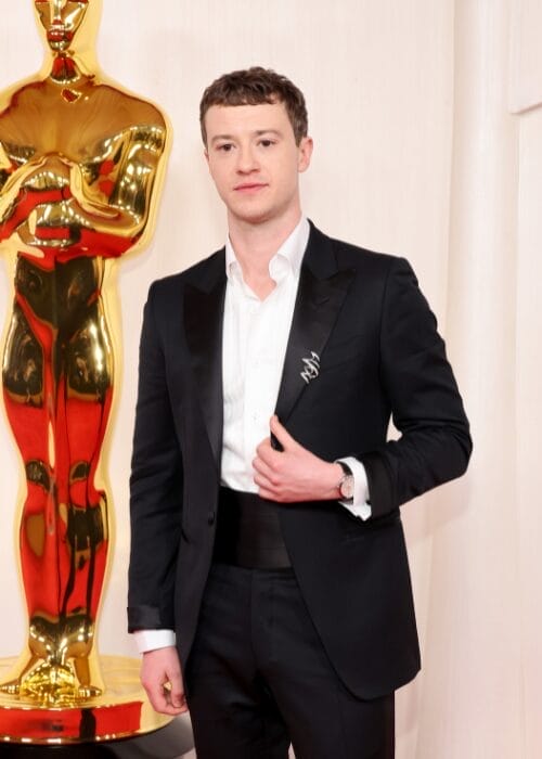 美国演员 Joseph Quinn 出席本届奥斯卡金像奖颁奖典礼,为利落的黑色西装套装搭配来自尚美巴黎(Chaumet)的 Torsade de Chaumet 胸针及万国表(IWC)Portofino Automatic 腕表,展现出独特的型男魅力。