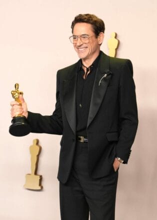 荣获本季奥斯卡金像奖最佳男配角的 Robert Downey Jr. 身穿黑色笔挺西装套装亮相,搭配来自积家(Jaeger-LeCoultre)经典 Reverso 翻转系列腕表和蒂芙尼(Tiffany & Co.)的罂粟花造型胸针,为全黑造型增添了一抹亮丽色彩。