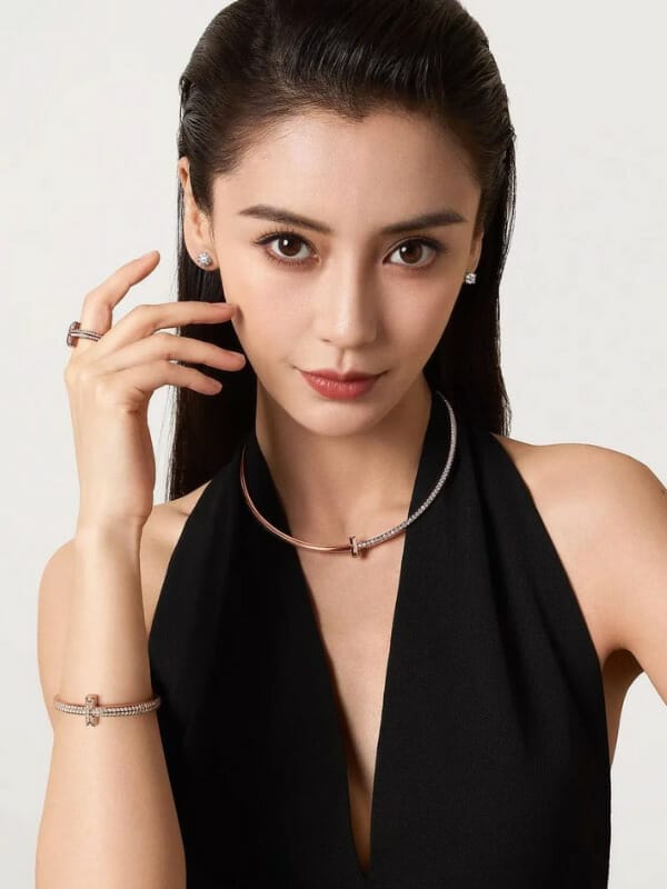 蒂芙尼(Tiffany & Co.)宣布中国演员杨颖(Angelababy)成为品牌 Tiffany T 系列的代言人。全新广告大片中,身穿一袭黑色礼服的 Angelababy ,魅力演绎最新 Tiffany T 系列珠宝,包括项链、戒指及耳环,自信诠释 Tiffany T 系列独有的魅力 —— “纯粹而瞩目,简约而强大”。