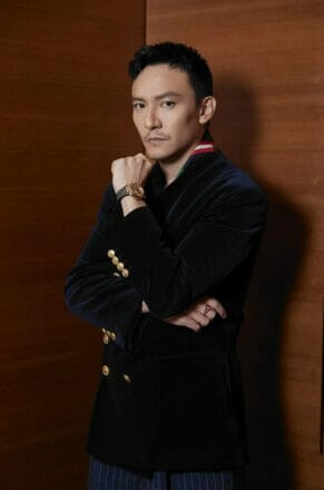 张震 担任金马59评审团之一以及颁奖人的张震,选择以卡地亚(Cartier)Pasha de Cartier玫瑰金镂空腕表和Juste un Clou玫瑰金钻石戒指搭配一身Gucci复古风西裝。