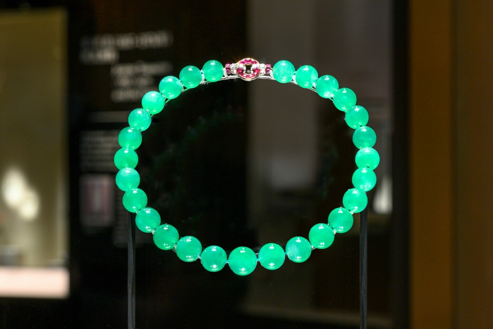 1934年,美国零售商伍尔沃斯百货继承人Barbara Hutton特别订制以翡翠、铂金、金、钻石和红宝石打造的项链。2 2