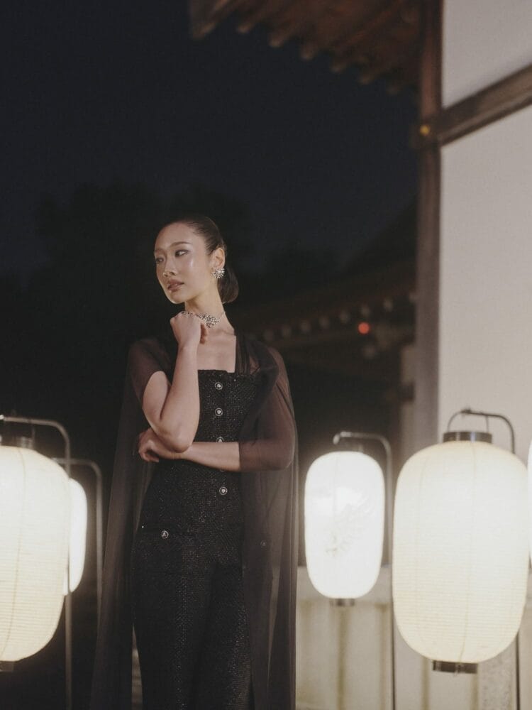 品牌大使高金银、演员昆凌、陈法拉,以及日本演员小松菜奈Nana Komatsu、宮沢氷魚Hio Miyazawa、吴孟珂、安藤樱 Sakura Ando、泰国演员 Chutimon 等八位知名面孔,皆佩戴着华美珠宝亮相京都。他们佩戴着香奈儿高级定制珠宝,在夜幕下舞动的光影与古寺的石阶之间穿梭。这一幕宛如史诗般的舞台剧,将品牌经典与现代优雅的碰撞,再度呈现在世人眼前。