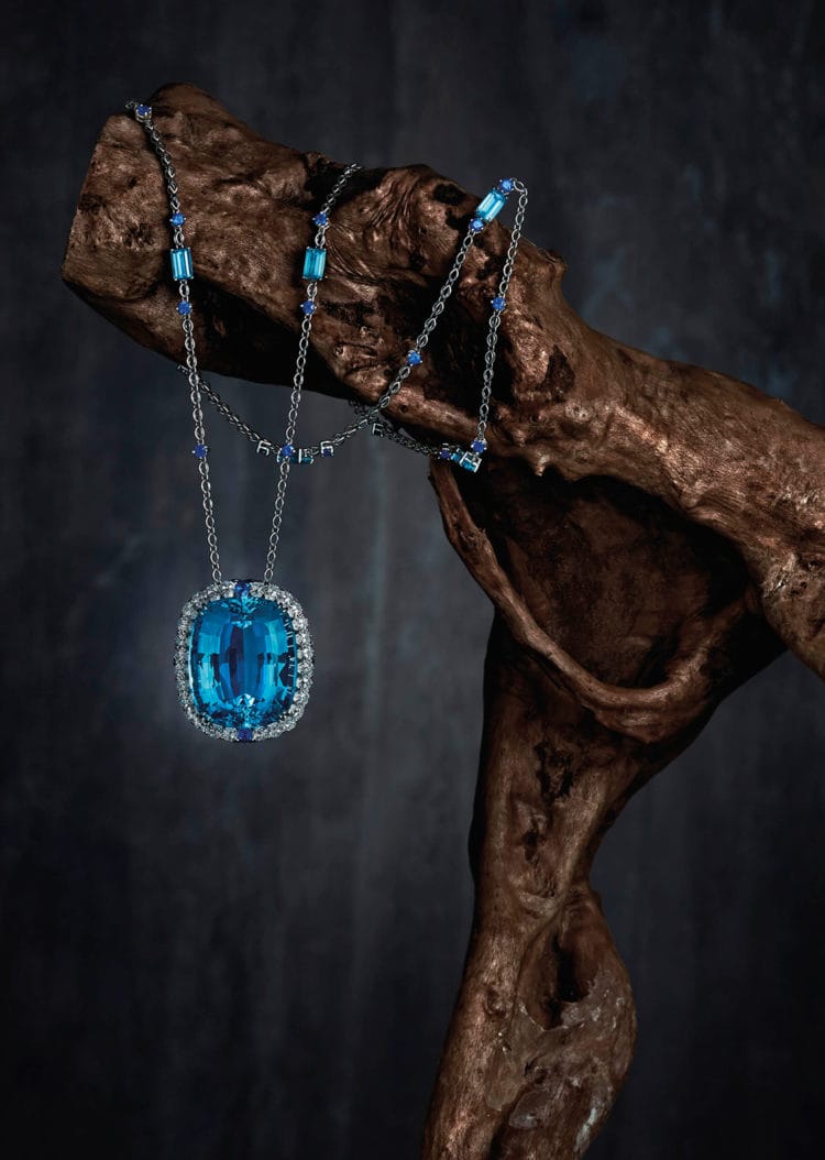 海蓝宝石链坠/Harry Winston。