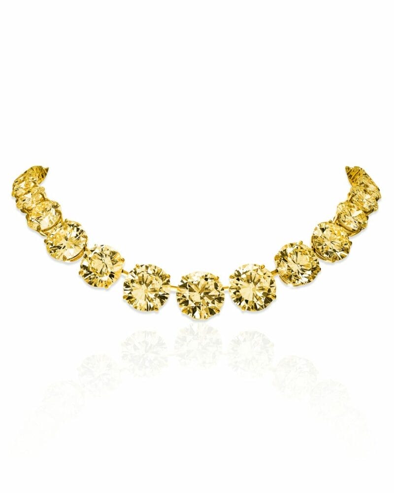 G-Dragon 身穿宽松浴袍,造型松弛随性,搭配 Jacob & Co. 的 Pastel Yellow Diamond Riviera Necklace,为整体造型增添一抹不可忽视的焦点。项链由明亮式切割的淡黄色钻石串联,镶嵌于 18K 黄色黄金上,色泽温润却不失锋芒。他对这类醒目珠宝的驾驭,依旧轻松自然,展现独有的从容与气场。