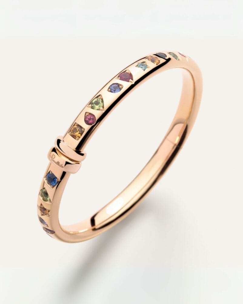 G‑Dragon 于社交媒体晒出的一组日常照种,配戴多款 Pomellato Iconica 系列作品。两款 18K 玫瑰金手镯分别镶嵌白钻与彩色宝石,与他手上所戴的同系列戒指相互呼应。这枚极具特色的戒指以玫瑰金为基底,点缀粉碧玺、橙蓝宝、沙弗莱石、红尖晶、坦桑石与橄榄石等多种彩宝,色彩缤纷却不显张扬,自然融入 G‑Dragon 标志性的混搭审美与独特气场。