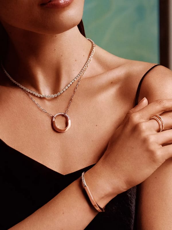 蒂芙尼(Tiffany & Co.)全新 Tiffany Lock ROSÉ Edition 项链以粉色蓝宝石为焦点,向 ROSÉ 的名字致敬。粉色蓝宝石象征爱的无限力量,完美体现 Lock 系列的奥妙精神和全球巨星的艺术本质。亮丽的宝石手工镶嵌于 18K 玫瑰金吊坠中,为了突显其魅力,佩戴者还可配搭 Tiffany Lock 系列的其他设计。