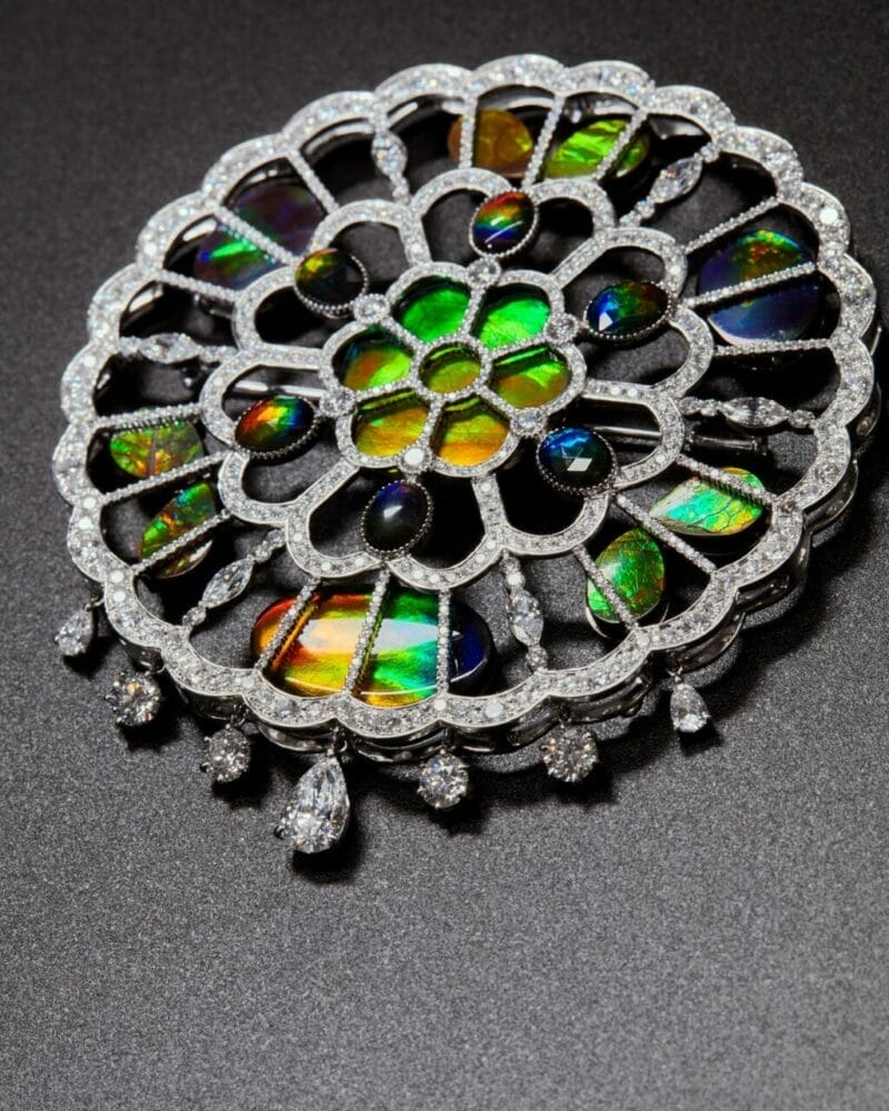斑彩石,历经六千六百万年的时光洗礼,最终形成这种珍稀的宝石,其主要产地位于加拿大熊掌层(Bearpaw Formation)。其表面呈现的虹彩,如同变幻的极光,在红、绿、蓝、紫等光谱间流转,深深吸引着资深的收藏家和具有独特品味的时尚人士。