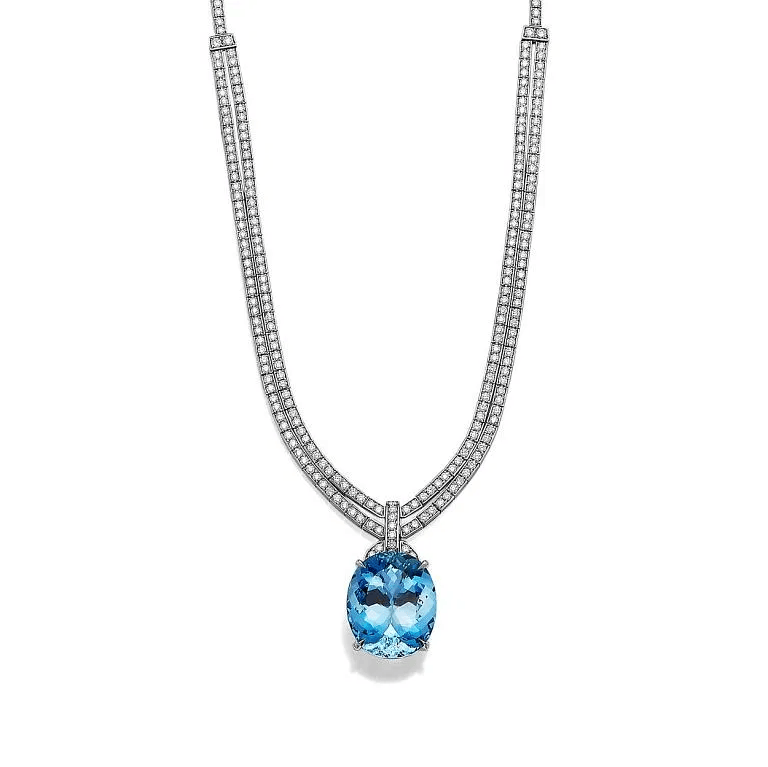 铂金镶嵌海蓝宝石和钻石吊坠