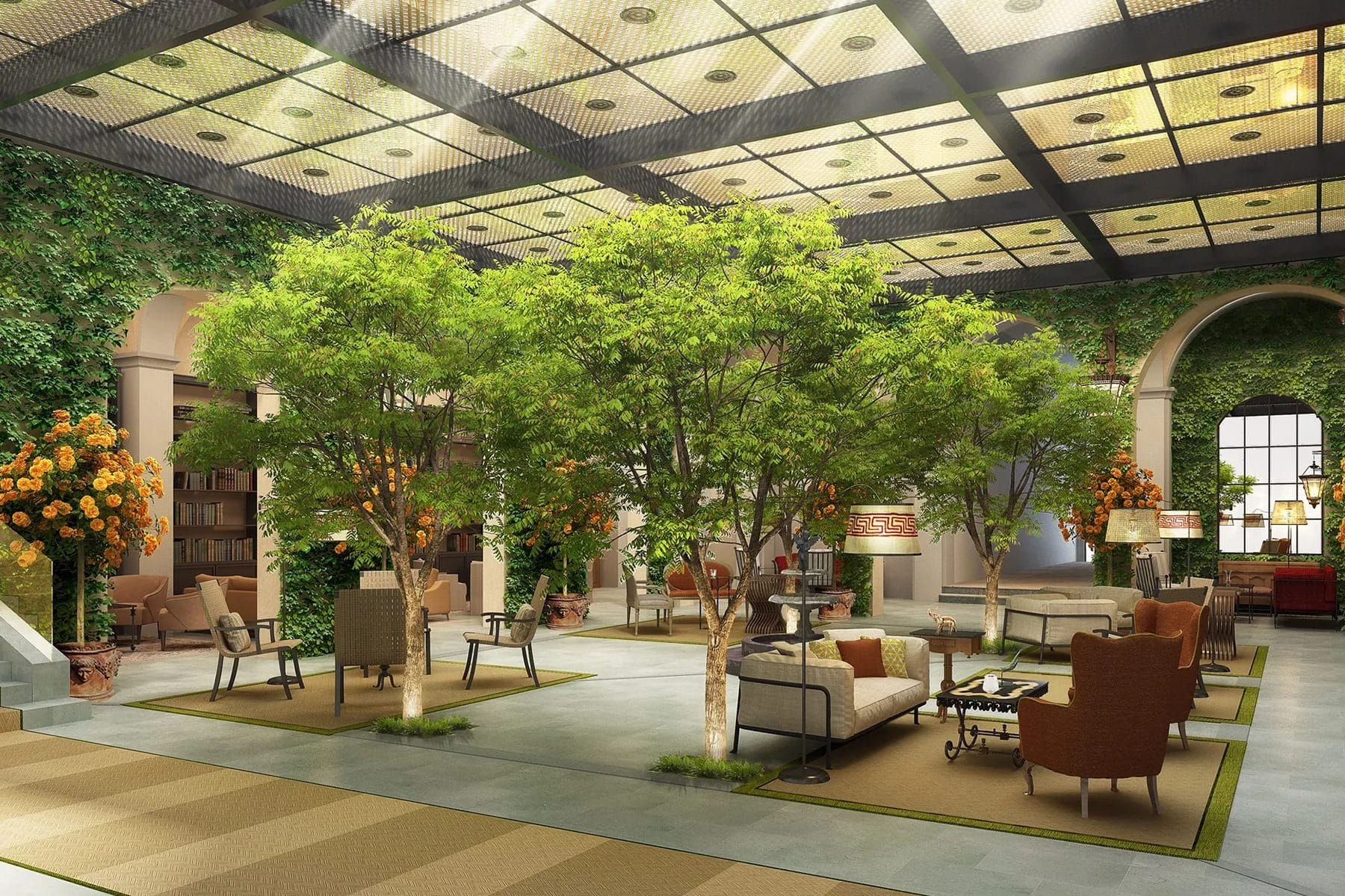 该酒店拥有 61 间客房、20 间套房和一间 2,250 平方英尺的特色套房,配备水疗中心、艺术画廊、餐厅等丰富的设施,进一步提升了乡村住宅的体验。