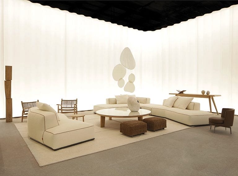 本届家具展上,品牌纷纷选择以流畅的有机形状勾勒家具面貌。致力于工艺与细节的 Flexform 通过 Between the Folds 系列,在沙发、桌子和灯具等新品中展现柔和曲线,并以多样性的家具单品带来灵活的搭配方式。设计兼具功能性和艺术美感,比如朴质清雅的屏风,为空间注入内敛的东方禅意。设计师以看似轻描淡写的手法,展现深厚的设计造诣,为空间营造静水深流的高贵气派。