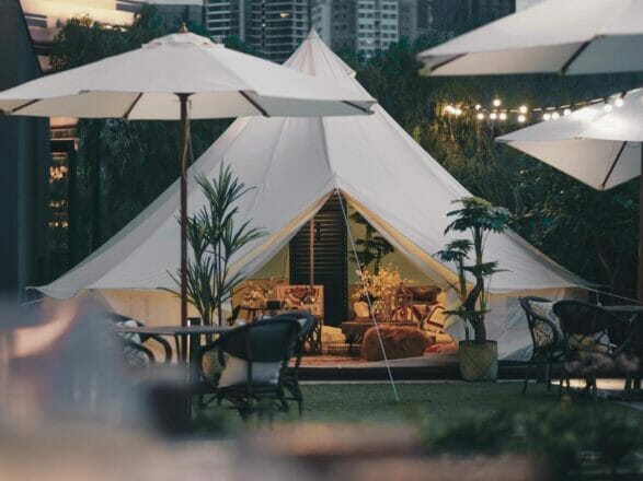Castra by Colony是位于吉隆坡金三角地段顶楼露台上的奢华营地,让旅者在城中也能体验露营的乐趣。帐篷内的设计以浪漫的波希米亚风格为主,充满异国风情,环境舒适,最重要的是适合旅者拍照打卡。帐篷与浴室拥有完善设施,到了夜晚,旅者可在露台上一边烧烤一边欣赏城市的满天繁星,享受宁静的时光。