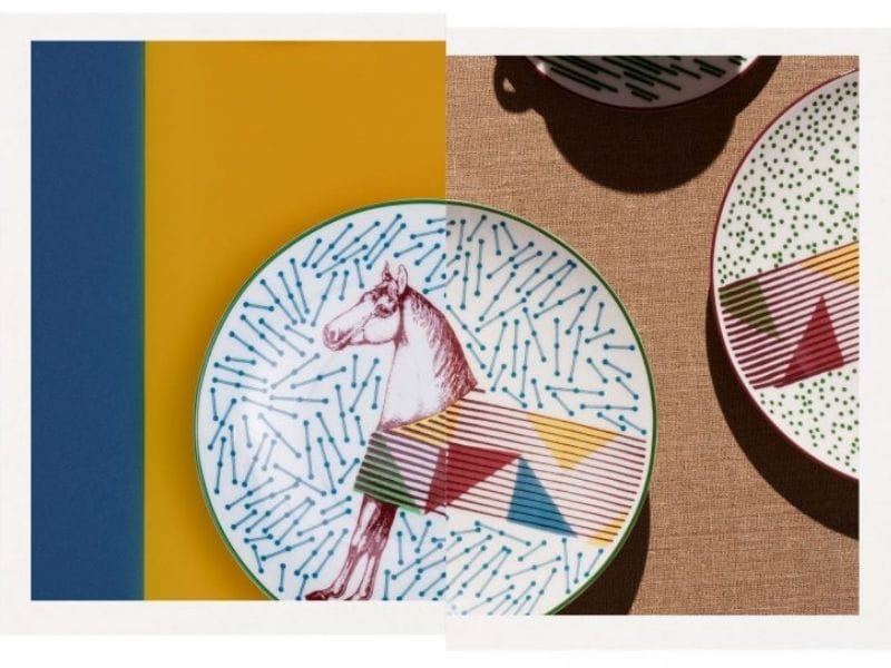 在爱马仕(Hermes)全新餐瓷系列中,设计概念来自于设计师Gianpaolo Pagni在Emile Hermes博物馆馆藏中发现的一匹马的雕刻,他以骑师的丝巾骑士服为灵感,为马匹装饰缤纷的图纹饰带,成为此餐瓷系列的主要元素,俏皮的设计让茶杯与杯碟洋溢着活泼气息。